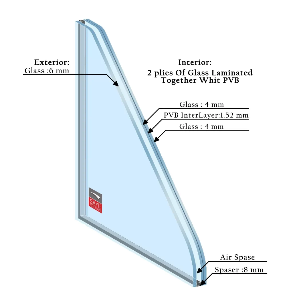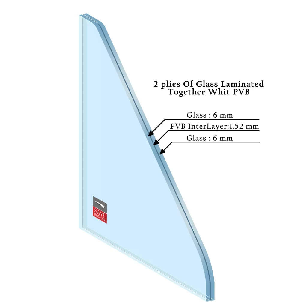 شیشه لمینت، شامل دو یا چند لایه شیشه است که توسط نوعی طلق به هم پرس شده و می‌چسبند. این طلق پلیمری، PVB (پلی وینیل بوتیرات) نام دارد که تحت فشار و حرارت ساخته می‌شود و مانند یک چسب محکم عمل می‌کند. با توجه به خاصیت چسبندگی بسیار بالای PVB، در اثر شکست قطعات شکسته شده بر روی لایه PVB باقی مانده و فرو‌نمی‌ریزند.در واقع شیشه لمینت، نوعی شیشه ایمنی است که در هنگام بروز ضربه و حادثه، خرد می‌شود اما قطعات آن متلاشی نمی‌شوند و از هم نمی‌پاشند. نکته مهم است که طلق های PVB با لایه های مختلفی در بازار موجود است که پر کاربردترین آن ها در ضخامت های  0.38 و 0.76 و 1.52  میلیمترموجود می باشد. هر چه قطعه شیشه بزرگ‌تر باشد، نیاز به استحکام بیشتری داریم. هر نوع شیشه ای، اعم از شیشه معمولی، سکوریت، ضد گلوله، رنگی، فلوت و …را می‌توان برای تولید شیشه لمینت استفاده نمود.
